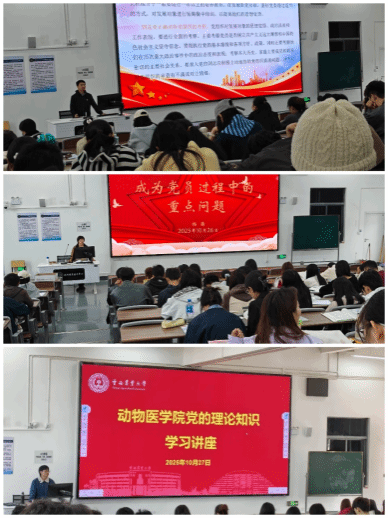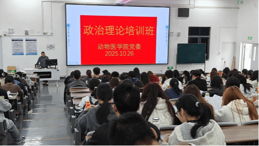 10月22日、26日,动物医学院党委组织开展了党的理论知识培训班,学院2025年递交入党申请书的师生、入党积极分子及2025年青马工程班学员200余人参加培训。